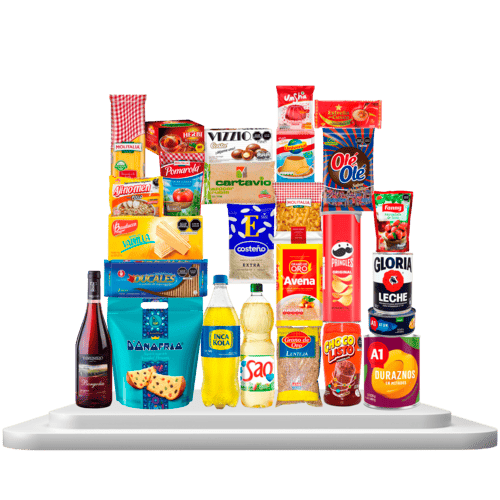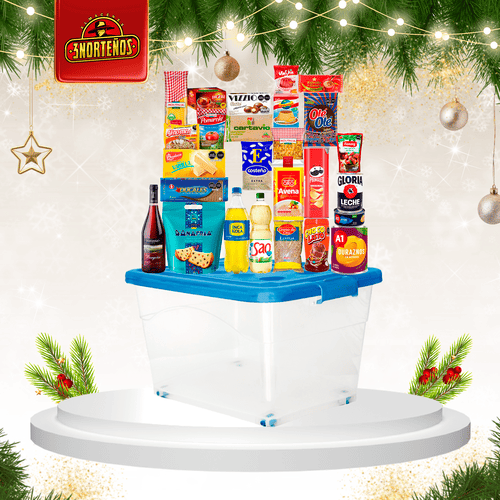 Impacto visual y variedad superior: doble ración de básicos, snacks importados, Chocolisto, postres, dulces finos y panetón, todo en caja grande con ruedas. La opción para regalos de alta jerarquía o cierres de contrato.